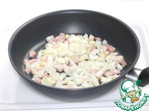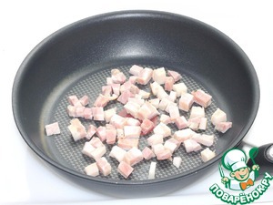 Добавить к бекону мелко нарезанные лук и чеснок и обжарить в течение 5 мин., помешивая.