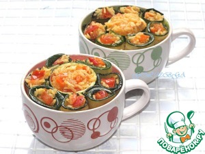 Запекала цуккини с рисом в предварительно нагретой до 220 С духовке 25 мин. до готовности цуккини.
