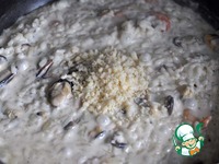 Добавляем тёртый пармезан. Всё перемешиваем. |