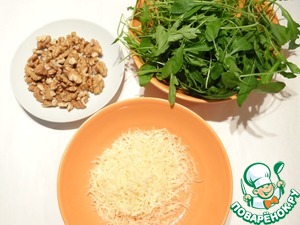 Сначала готовлю песто. Мою рукколу, пармезан натираю на терке.