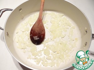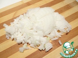 Теперь приступаю к приготовлению ризотто. Репчатый лук чищу, мою и нарезаю мелко на кубики.