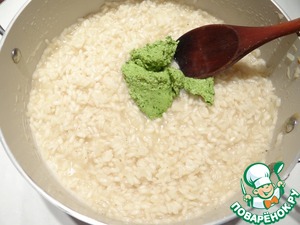 Затем добавляю песто (немного песто я оставляю для украшения ризотто).
