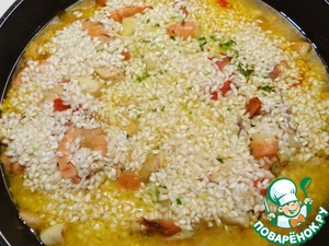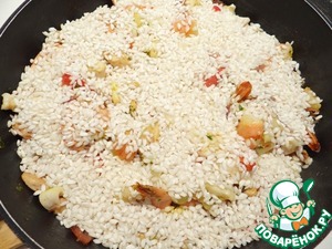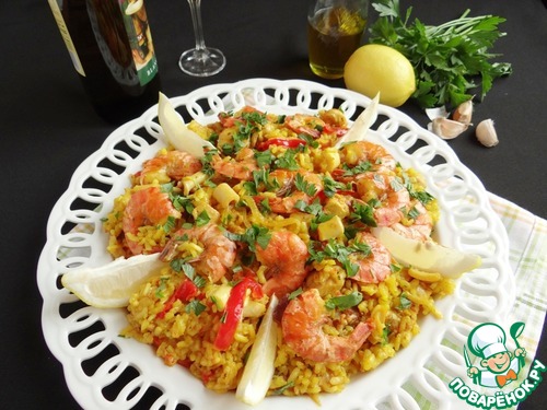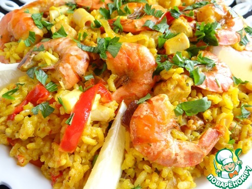 Рецепт «Паэлья с куриным филе, морепродуктами и филе палтуса»: