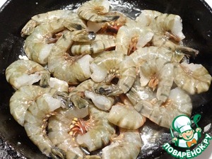 Обжариваю креветки, как и кальмары, не более 2-х минут, до светло-розового цвета.