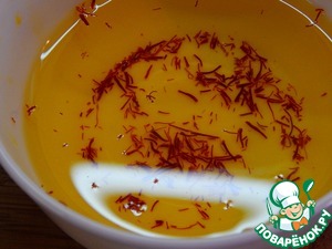 Бульон перемешиваем с пивом и шафрановой водой, ставим на огонь, помешивая доводим до кипения.