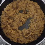 Добавить рис, хорошо перемешать чтобы рис слал глянцевого цвета от масла.