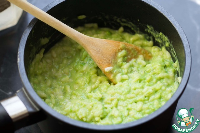 Вмешиваем его в ризотто, чтобы получилась однородная текстура.