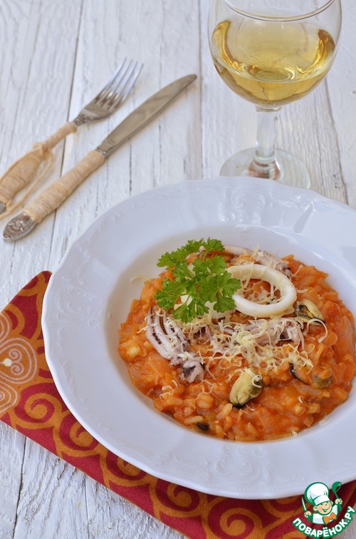 Рецепт «Ризотто томатное с морепродуктами и сыром в мультиварке»: