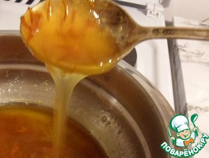 Готовый сироп остудить - например, поставив кастрюльку в таз с холодной водой. Остынув, он приобретет консистенцию жидкого меда.