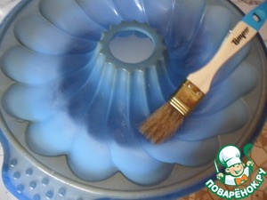 Духовку нагреть до 200 градусов, форму смазать тонким слоем масла - я люблю использовать для этого кисть из натуральной щетины, она смазывает форму самым тонким слоем.