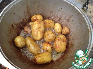 С картофелем тоже самое что и с бараниной, постоянно перемешиваем и не даём подгореть! Доводим до полуготовности, вынимаем, остужаем.