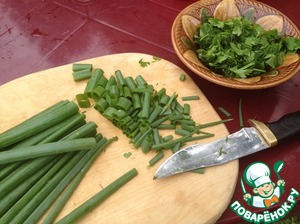 - Зелень (Лук, укроп, петрушка... Можно добавлять всё что угодно, на ваш вкус!) — 200 г