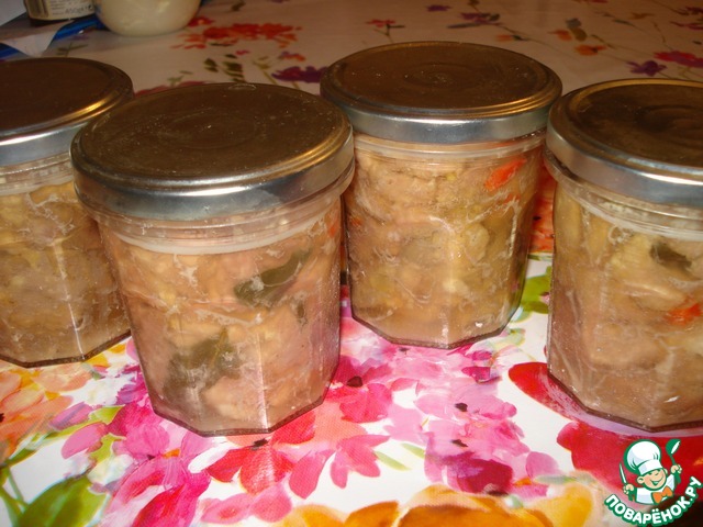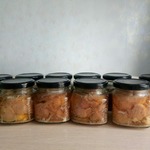 Разложить мясо в заранее вымытые баночки (0,5 кг мяса помещается в баночке 0,5 л), хорошенько утрамбовать.