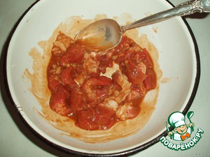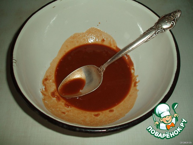 Приготовить маринад. Для этого смешать в миске 1 стол. ложку соевого соуса, весь сахар и вино. Затем добавить муку, тщательно перемешать.