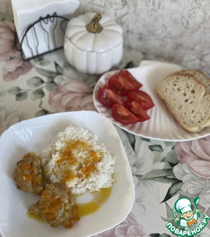 Мы любим кушать с рисом, а можна еще с гречкой и другой кашей это кому как нравится.