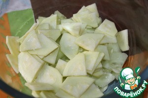 Кабачок, огурцы, яблоко вымыть, обсушить. У огурцов срезать кончики. Очистить.