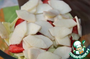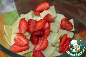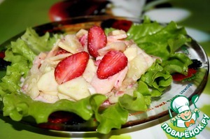 "Экстравагантный" салат. Клубника и кабачок? Клубника и огурец? Не правда ли, необычное сочетание? Но когда это меня останавливало? :) Не спешите судить, вкус очень приятный и гармоничный.