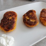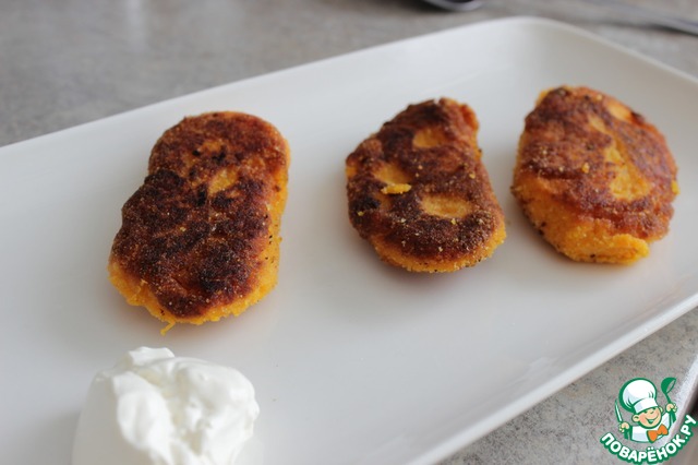 Обжарьте на растительном масле. Подайте со сметанкой. Я в этот день еще пожарила куриные крылья в чесночной стружке. По такому же принципу готовлю котлеты из свеклы. Великолепно!