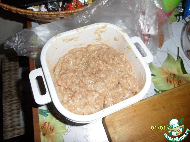 Готовим фарш, подробных фоток не делал. Тут все просто. Можно взять покупной, можно сделать самому, второй вариант предпочтительнее. Если делаете сами, то при использовании только грудки можно в фарш добавить луковицу, а так лучше брать смешанный фарш грудки/бедра, так зразы получатся сочнее.