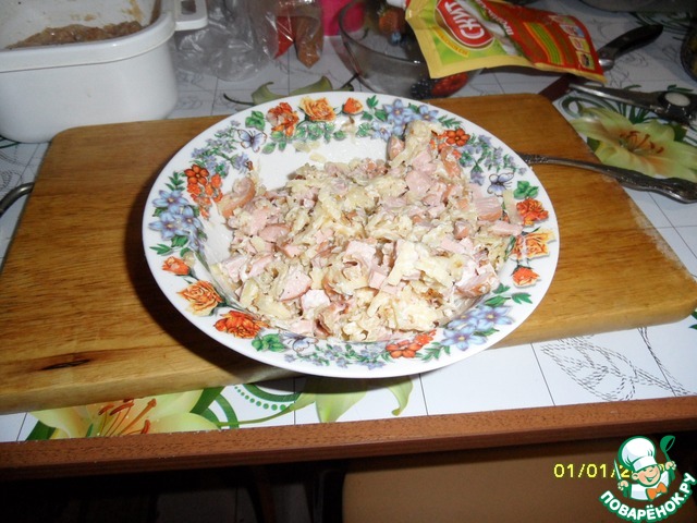 Далее замешиваем начинку, можно замешать и без майонеза, но я положил немного )