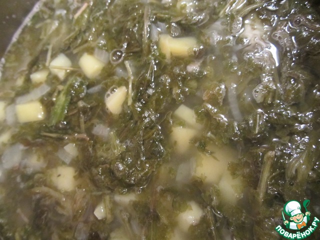 Добавить щавель, перемешать, довести до кипения и варить еще 3 минуты.