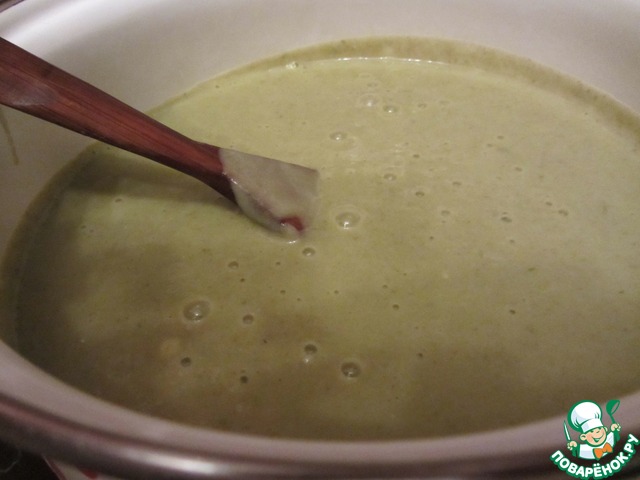 Охладим суп до теплого состояния и пюрируем при помощи блендера.