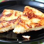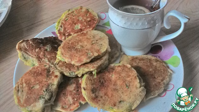 В сковороду наливаем немного масла, даем нагреться, но не сильно, затем выливаем полученную смесь, распределяем её равномерным слоем и жарим на среднем огне, 7-8 минут с одной стороны и столько же с другой. Переворачивать нужно осторожно, лучше всего это делать с помощью крышки от сковороды или двух лопаток, иначе лепешка может порваться (я разрезала лепешку на 4 части и переворачивала каждую часть отдельно).