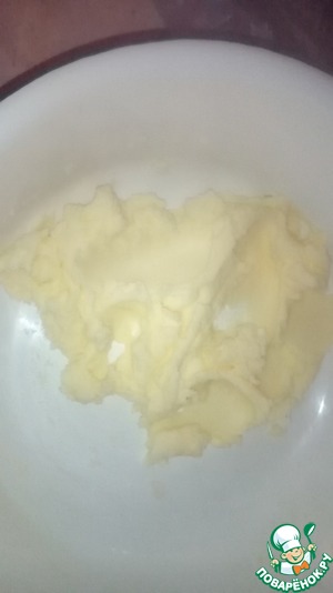 Размягченное сливочное масло тщательно взбиваем с сахарной пудрой.