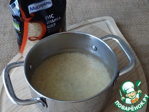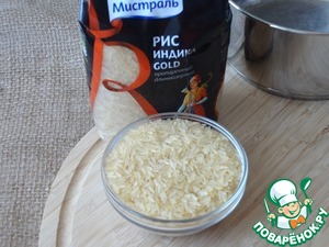 Отмерьте рис. Для этого рецепта необходим длиннозерный рис. Я взяла пропаренный длиннозерный рис ИНДИКА COLD ТМ Мистраль. Этот рис в результате пропаривания приобретает часть витаминов и минералов, содержащихся в отрубевой оболочке и никогда не слипается.