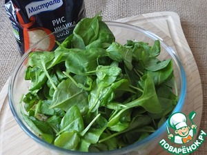 Добавьте листья шпината. Именно шпинат в этом салате непринципиален. Можно использовать любые мягкие салатные листья с нейтральным вкусом.