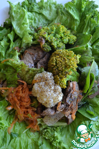 [+5]Готовила салат сразу в тройном объёме, с мини-шпинатом; печень с луком и натёртой морковью также готовила в пароварке 40 минут.
