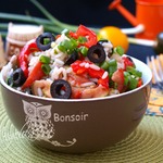 Теплый салат с рисом по-средиземноморски