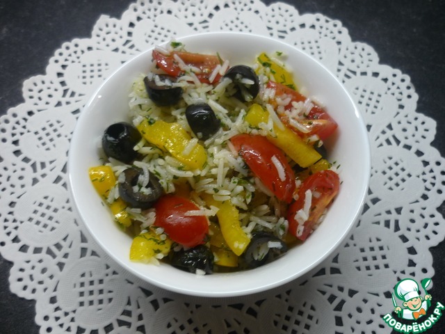 Рецепт «Теплый салат с рисом по-средиземноморски»: