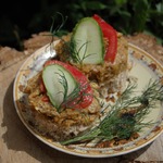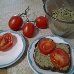 Бутерброды получаются особенно вкусными, если поверх паштета положить кусочек помидора и огурца.