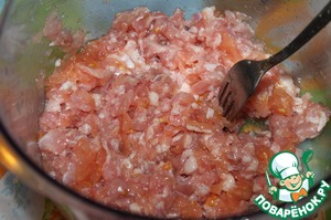 Соединить фарш и помидоры, посолить, поперчить, перемешать. -