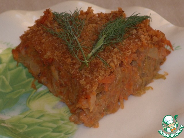 - Сухари панировочные / Панировка (1 ст.л. для обмазки формы, 1 ст.л. в капусту) — 2 ст. л.