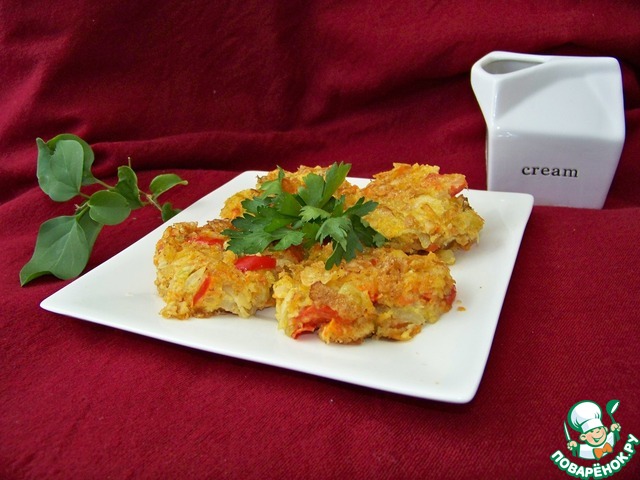 В эту смесь добавить овощи, 1 ст. л. панировочных сухарей, перемешать