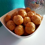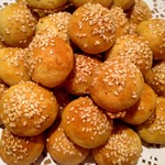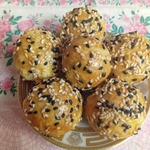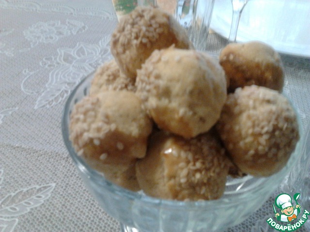 6. Помазать колобки взбитым яйцом и посыпать семенами кунжута.