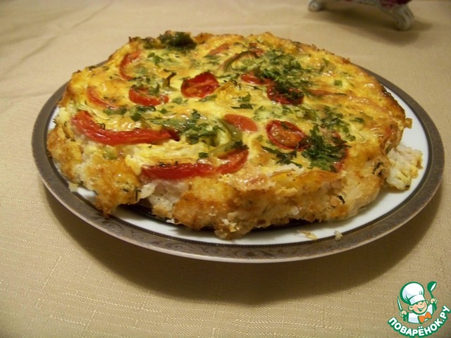 Получившуюся массу выкладываем в смазанную сливочным маслом разъемную форму. Диаметр - 26 см. Формируем бортики. Если вы любите зажаристую корочку - возьмите меньше риса, тарт получится тоньше.