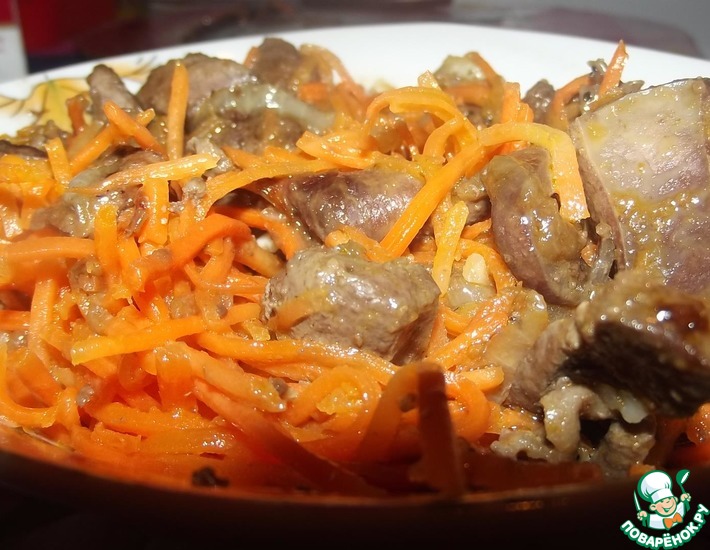 Рецепт «Закуска " Осенняя" из свиной печени и корейской моркови»: