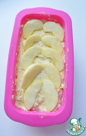 Сверху выкладываем дольки яблока, присыпаем сахаром.