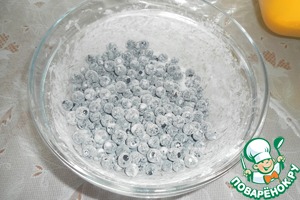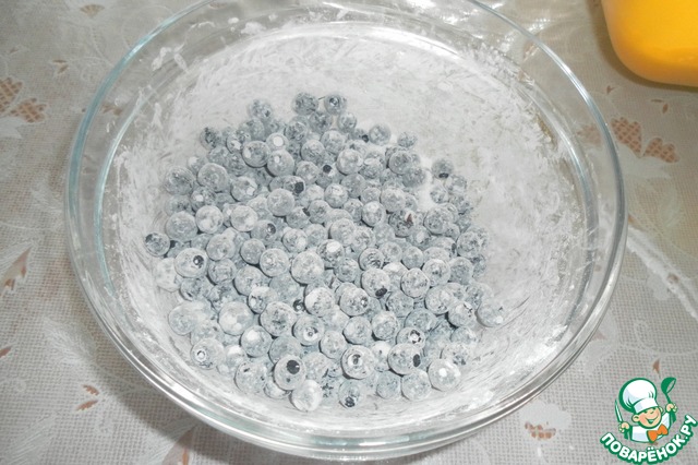 Чернику моем, сушим на полотенце, обваливаем ягоду в крахмале.