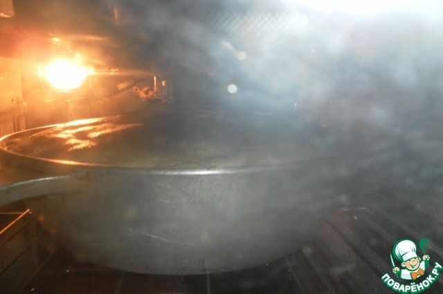 Смазываем сковороду растительным маслом, выливаем тесто и выпекаем при температуре 180 С около 35-40 мин. Готовность проверяем деревянной палочкой. Не забываем, что бисквитное тесто очень капризное и не любит, когда его беспокоят раньше времени, поэтому духовку не открываем во время выпечки. Я наслаждалась процессом увеличения объема моего пирога через стекло духового шкафа.