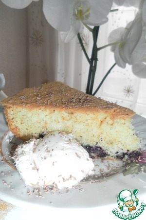 По рецепту готовый пирог не рекомендуется покрывать глазурью, его нужно пробовать в первозданном виде. Я последовала этому совету, подала пирог лишь с кусочком ванильного мороженого. Нежный кисло-сладкий вкус черники отлично гармонировал с мягким бисквитом! Но любители сладкого могут дополнить эту картину, например, черничным джемом.