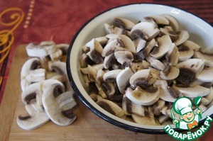 Шампиньоны почистить и нарезать тонкими пластинками.