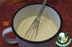 За это время хорошо размешать сметану с мукой, добавить куркуму, приправить по вкусу (с солью будьте осторожны, итак пршут, да и бекон тоже дают довольно много соли), развести бульоном.