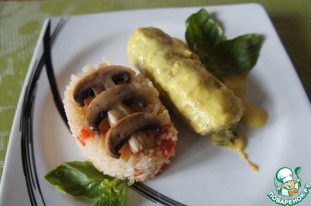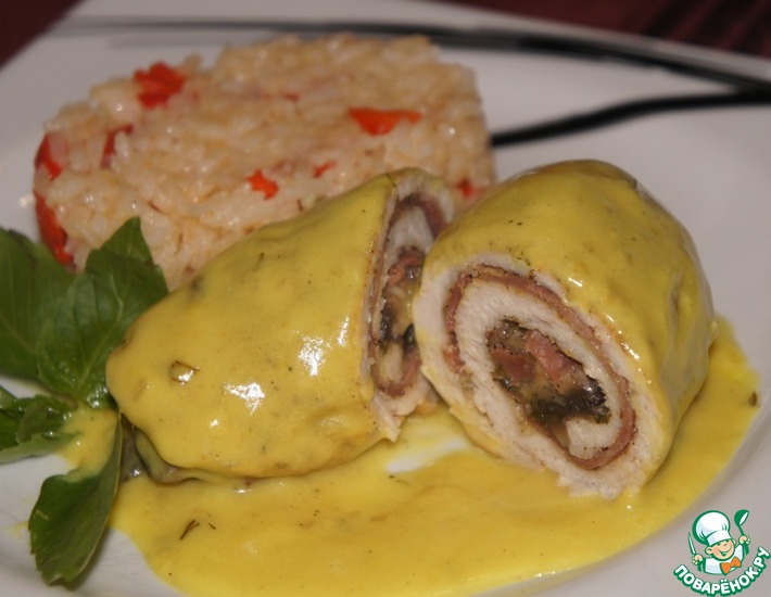 Рецепт «Рулеты из грудки индейки с шампиньонами»: