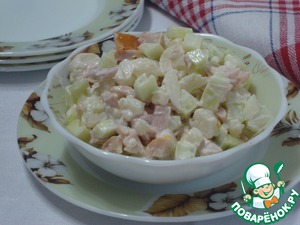 Простой салат, немного вредный, но вкусный. Думаю, что иногда можно и приготовить, когда хочется чего-нибудь такого.