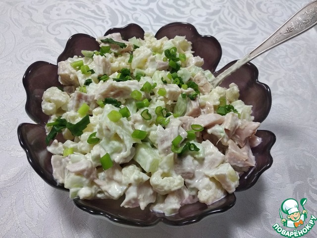 - Капуста цветная (Продукты для салата взять в произвольном количестве , но в равных пропорциях .) — 250 г