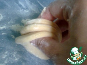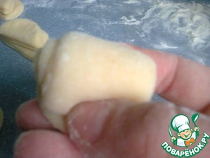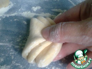 Из каждого скрутить рулетики, немного подтягивая тесто